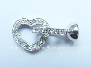 15.6x14mm Heart Shaped Silver Clasp w/ CZ & bell S/S (3.7g)