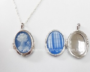18X25mm blue agate cameo locket (silver/ gold plated/ rhodium plated)