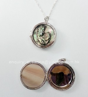 25mm Black MOP cameo locket (silver/ gold plated/ rhodium plated)