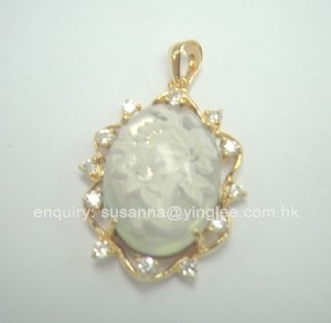 13X18mm Black MOP glassy cameo pendant with CZ (silver/ gold plated/ rhodium plated)