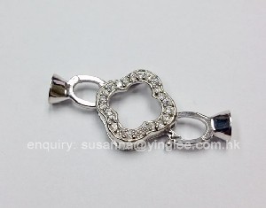 16x15.5mm flower CZ mounting clasp w/ 2 bells S/S